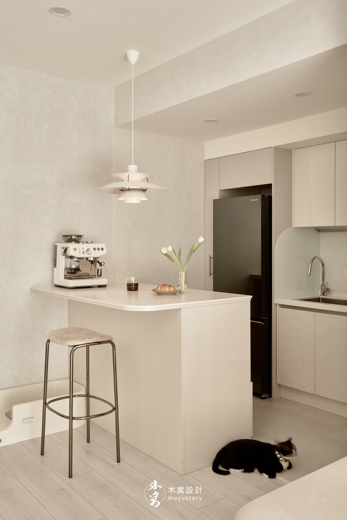 在空间裡,黑白色的猫咪轻盈穿梭,